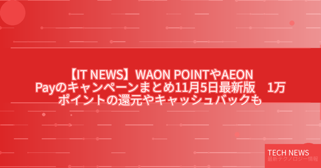 【IT NEWS】WAON POINTやAEON Payのキャンペーンまとめ11月5日最新版 1万ポイントの還元やキャッシュバックも