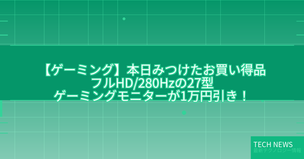 【ゲーミング】本日みつけたお買い得品フルHD/280Hzの27型ゲーミングモニターが1万円引き!