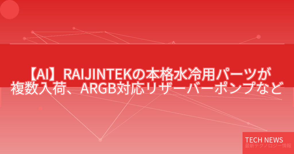 【AI】RAIJINTEKの本格水冷用パーツが複数入荷、ARGB対応リザーバーポンプなど