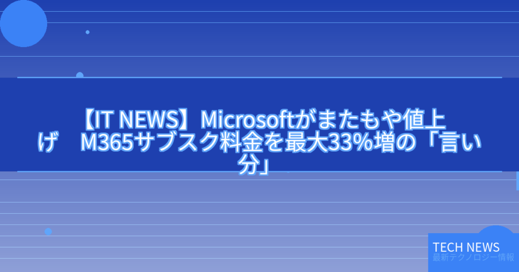 【IT NEWS】Microsoftがまたもや値上げ M365サブスク料金を最大33%増の「言い分」