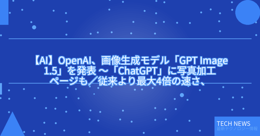 【AI】OpenAI、画像生成モデル「GPT Image 1.5」を発表 ~「ChatGPT」に写真加工ページも/従来より最大4倍の速さ、ディテールを保ったまま指示通りに画像の生成・編集