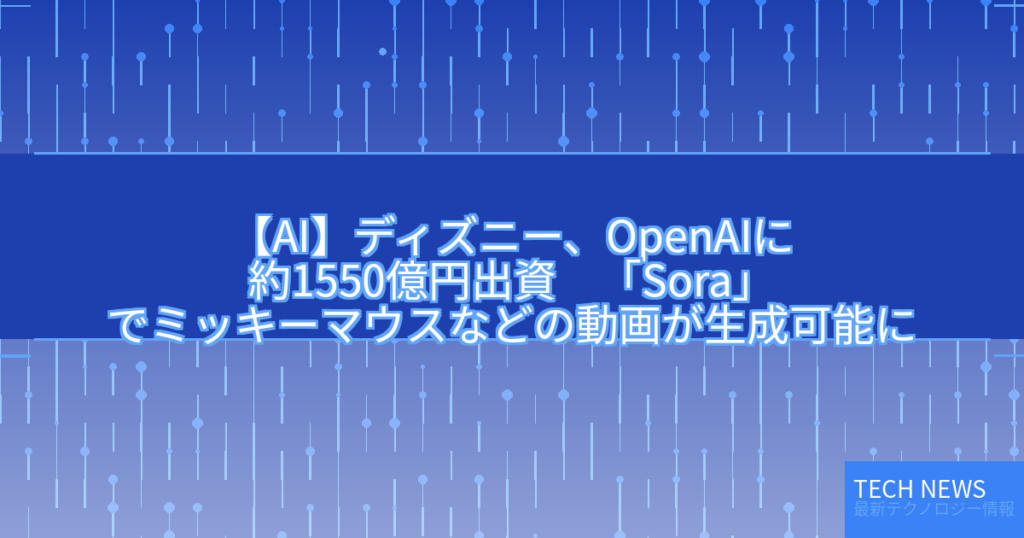 【AI】ディズニー、OpenAIに約1550億円出資 「Sora」でミッキーマウスなどの動画が生成可能に