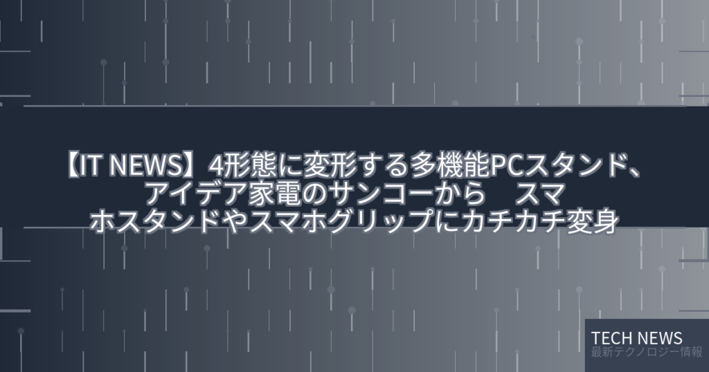 【IT NEWS】4形態に変形する多機能PCスタンド、アイデア家電のサンコーから スマホスタンドやスマホグリップにカチカチ変身