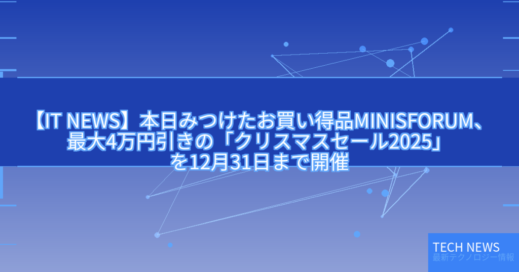 【IT NEWS】本日みつけたお買い得品MINISFORUM、最大4万円引きの「クリスマスセール2025」を12月31日まで開催