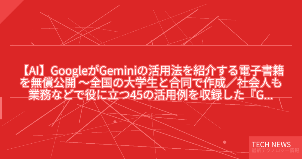 【AI】GoogleがGeminiの活用法を紹介する電子書籍を無償公開 ~全国の大学生と合同で作成/社会人も業務などで役に立つ45の活用例を収録した『Gemini 活用事例集』Book Watch/ニュース