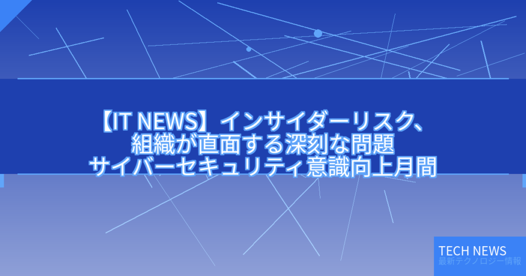 【IT NEWS】インサイダーリスク、組織が直面する深刻な問題サイバーセキュリティ意識向上月間