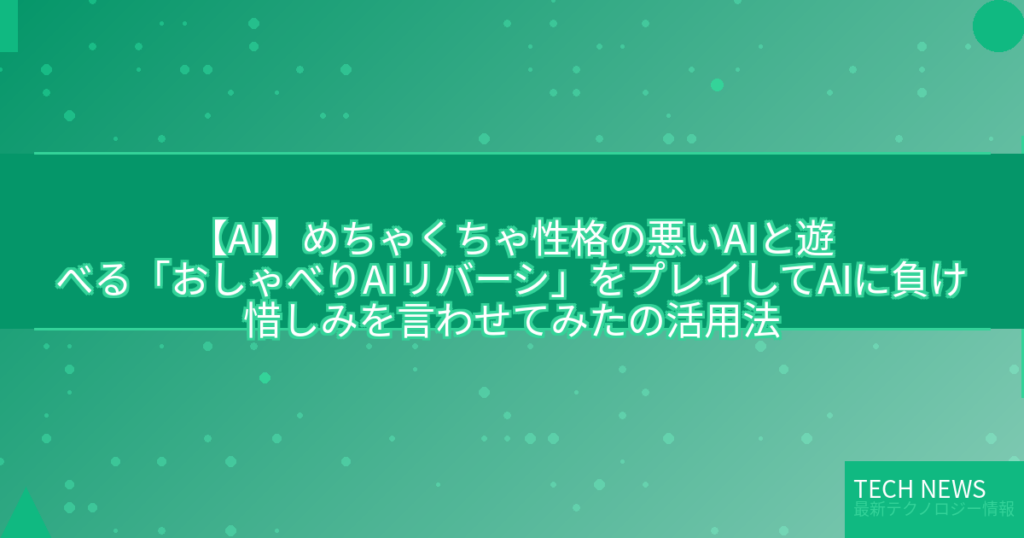 【AI】めちゃくちゃ性格の悪いAIと遊べる「おしゃべりAIリバーシ」をプレイしてAIに負け惜しみを言わせてみたの活用法