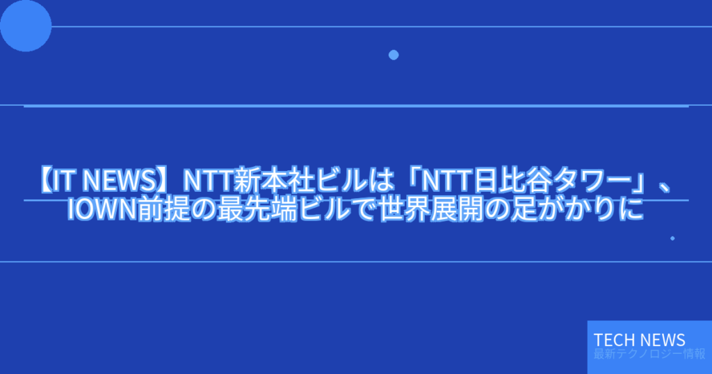 【IT NEWS】NTT新本社ビルは「NTT日比谷タワー」、IOWN前提の最先端ビルで世界展開の足がかりに