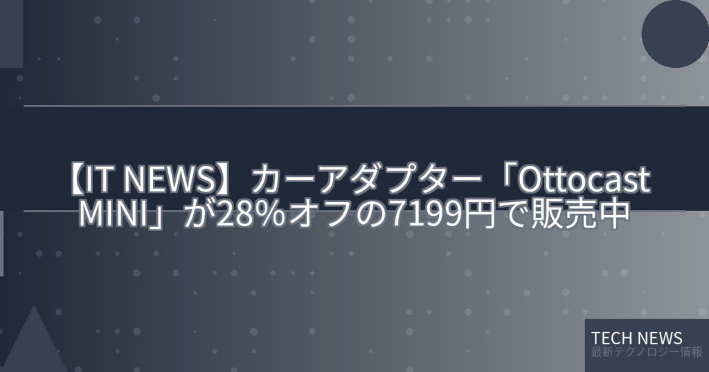 【IT NEWS】カーアダプター「Ottocast MINI」が28%オフの7199円で販売中