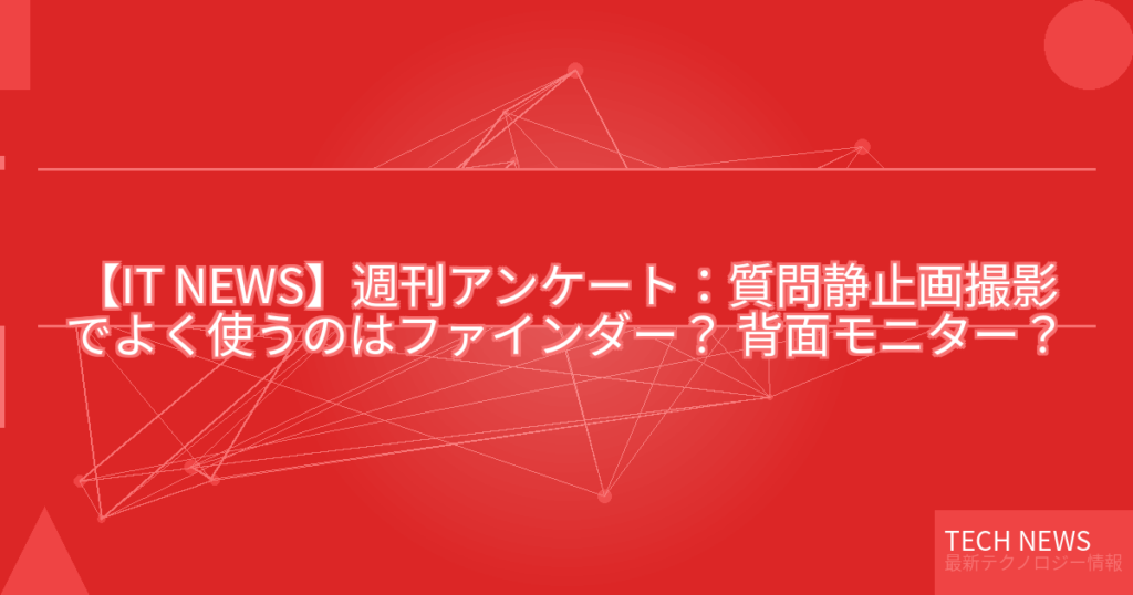 【IT NEWS】週刊アンケート:質問静止画撮影でよく使うのはファインダー? 背面モニター?