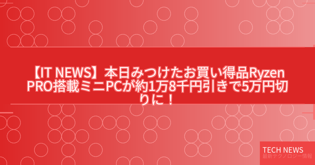 【IT NEWS】本日みつけたお買い得品Ryzen PRO搭載ミニPCが約1万8千円引きで5万円切りに!