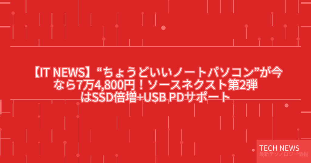 【IT NEWS】“ちょうどいいノートパソコン”が今なら7万4,800円!ソースネクスト第2弾はSSD倍増+USB PDサポート