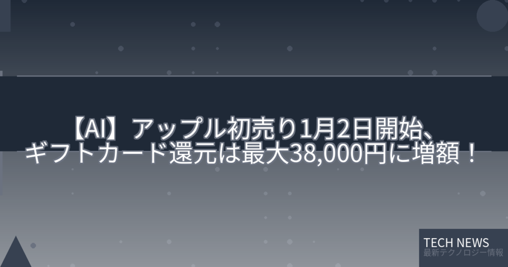 【AI】アップル初売り1月2日開始、ギフトカード還元は最大38,000円に増額!