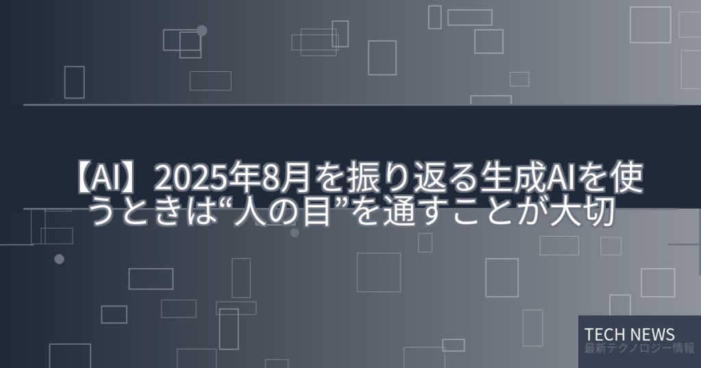 【AI】2025年8月を振り返る生成AIを使うときは“人の目”を通すことが大切