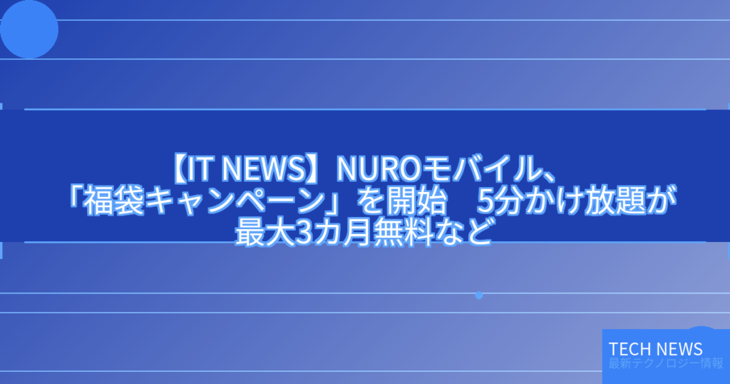 【IT NEWS】NUROモバイル、「福袋キャンペーン」を開始 5分かけ放題が最大3カ月無料など