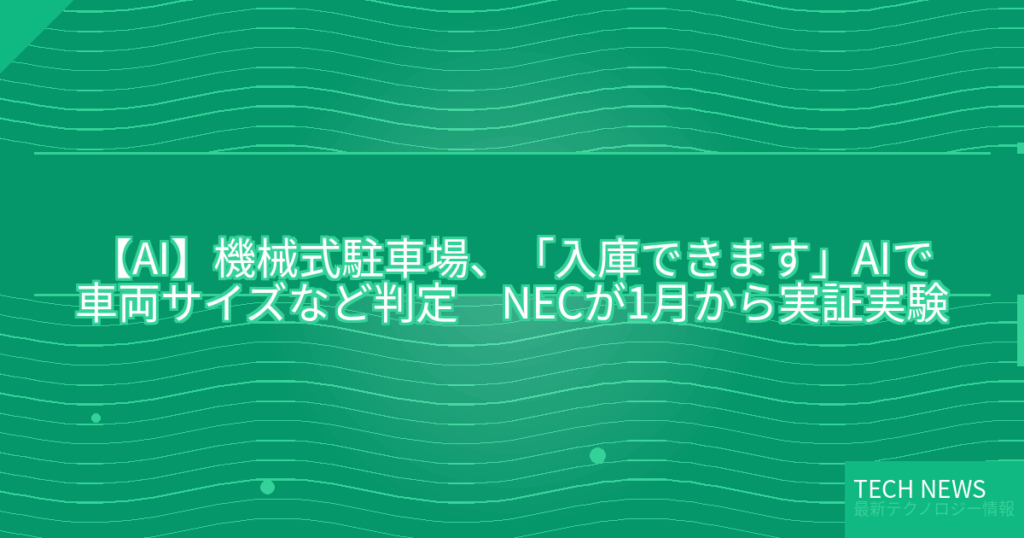 【AI】機械式駐車場、「入庫できます」AIで車両サイズなど判定 NECが1月から実証実験