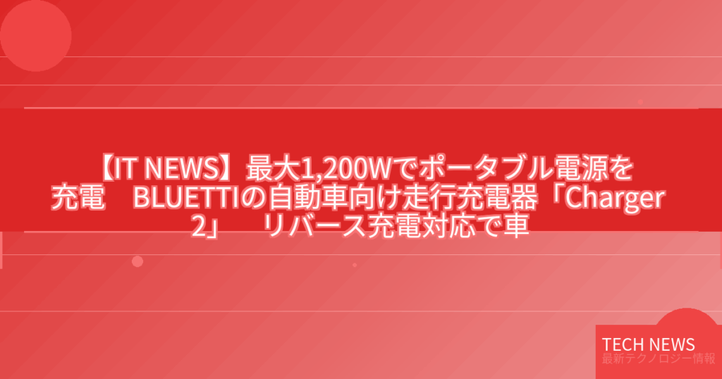 【IT NEWS】最大1,200Wでポータブル電源を充電 BLUETTIの自動車向け走行充電器「Charger 2」 リバース充電対応で車のバッテリーメンテナンスも