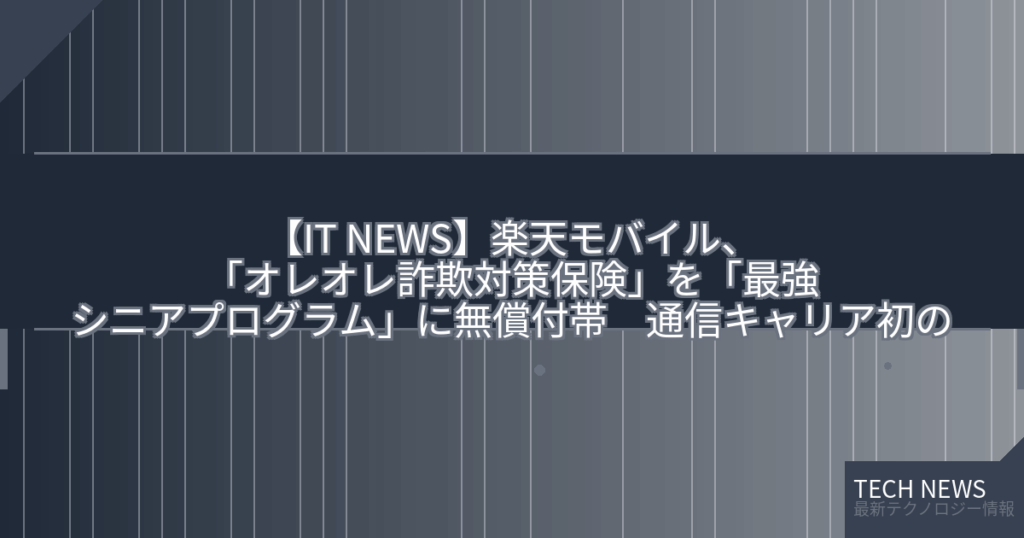 【IT NEWS】楽天モバイル、「オレオレ詐欺対策保険」を「最強シニアプログラム」に無償付帯 通信キャリア初の取り組み