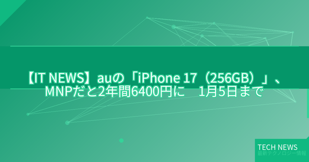 【IT NEWS】auの「iPhone 17(256GB)」、MNPだと2年間6400円に 1月5日まで