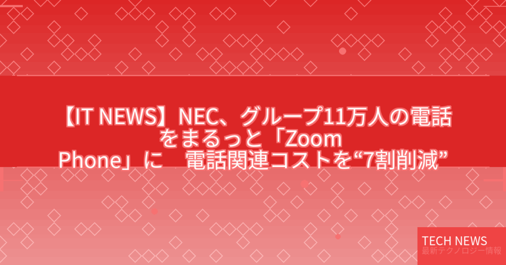 【IT NEWS】NEC、グループ11万人の電話をまるっと「Zoom Phone」に 電話関連コストを“7割削減”