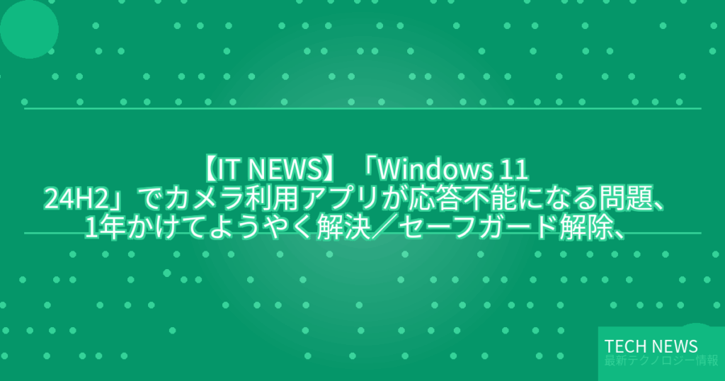 【IT NEWS】「Windows 11 24H2」でカメラ利用アプリが応答不能になる問題、1年かけてようやく解決/セーフガード解除、アップグレードの提供中止につながる問題は実質残り1件
