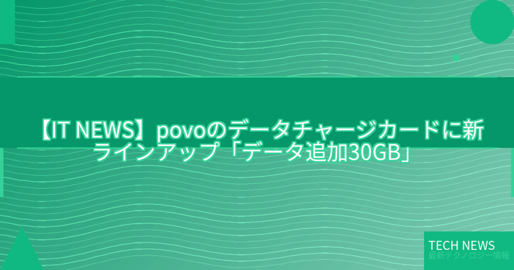 【IT NEWS】povoのデータチャージカードに新ラインアップ「データ追加30GB」