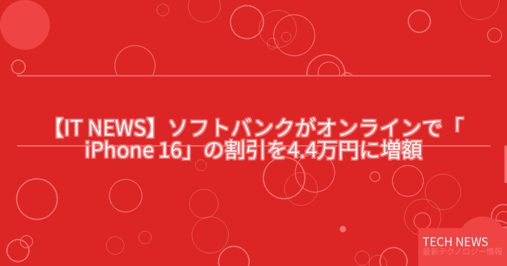 【IT NEWS】ソフトバンクがオンラインで「iPhone 16」の割引を4.4万円に増額