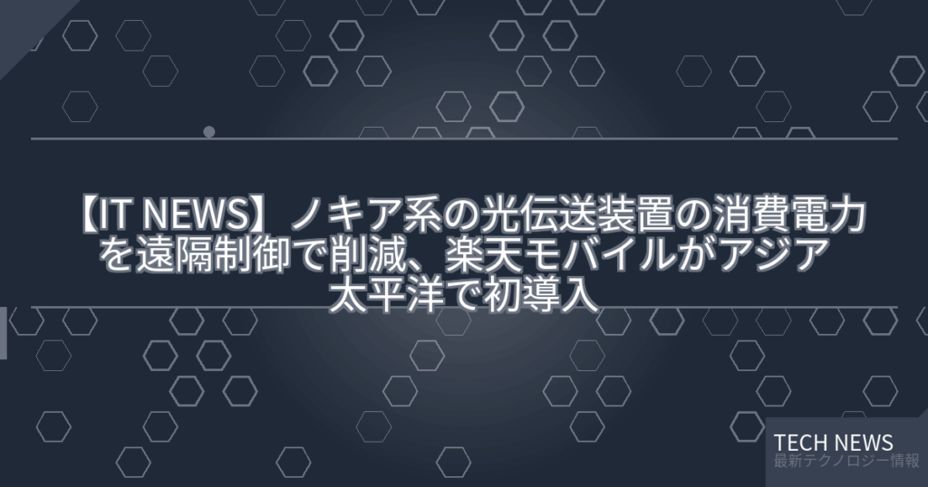 【IT NEWS】ノキア系の光伝送装置の消費電力を遠隔制御で削減、楽天モバイルがアジア太平洋で初導入