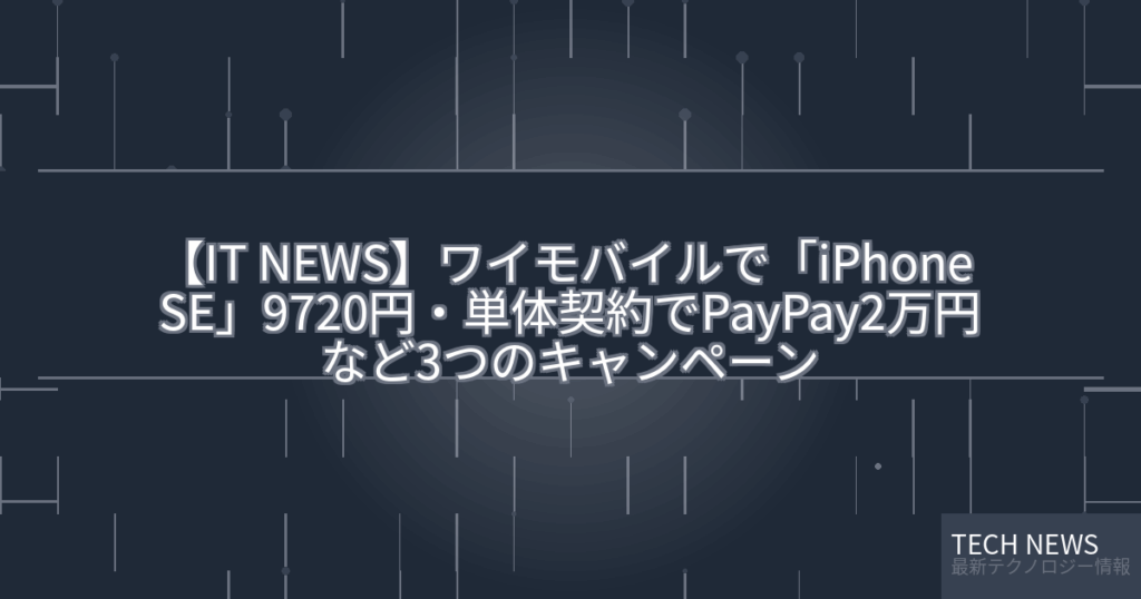【IT NEWS】ワイモバイルで「iPhone SE」9720円・単体契約でPayPay2万円など3つのキャンペーン