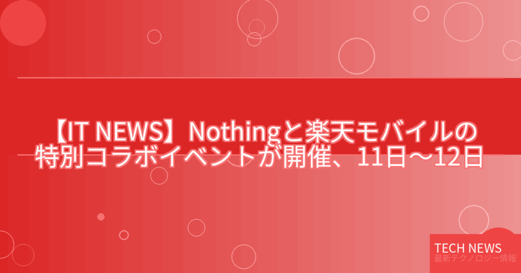 【IT NEWS】Nothingと楽天モバイルの特別コラボイベントが開催、11日~12日