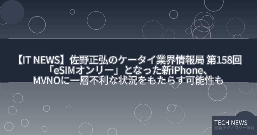【IT NEWS】佐野正弘のケータイ業界情報局 第158回 「eSIMオンリー」となった新iPhone、MVNOに一層不利な状況をもたらす可能性も