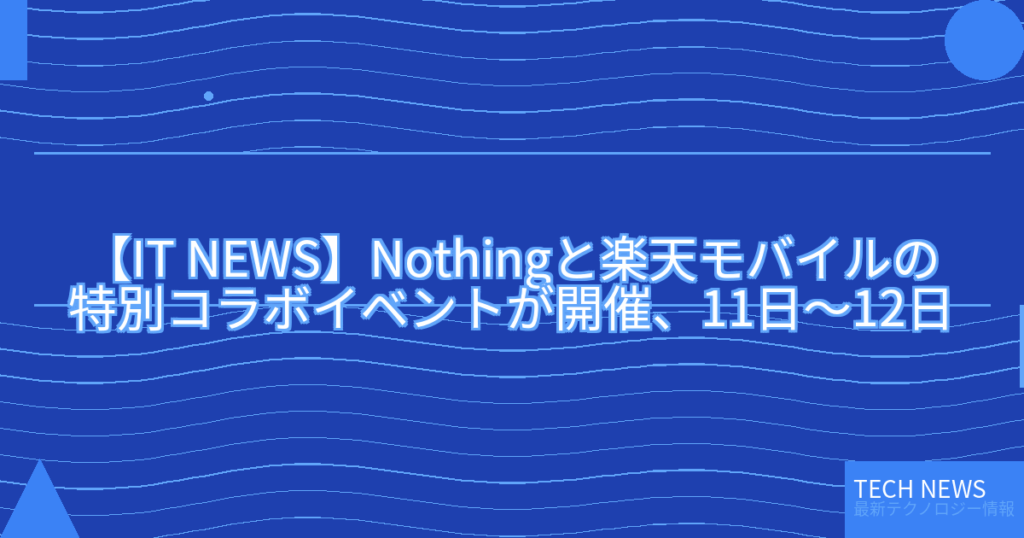 【IT NEWS】Nothingと楽天モバイルの特別コラボイベントが開催、11日~12日