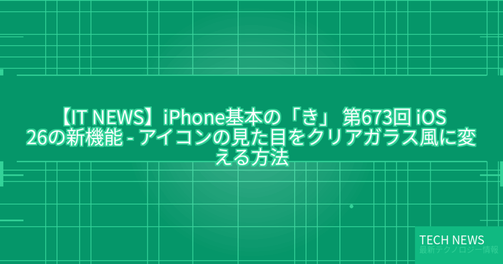 【IT NEWS】iPhone基本の「き」 第673回 iOS 26の新機能 – アイコンの見た目をクリアガラス風に変える方法
