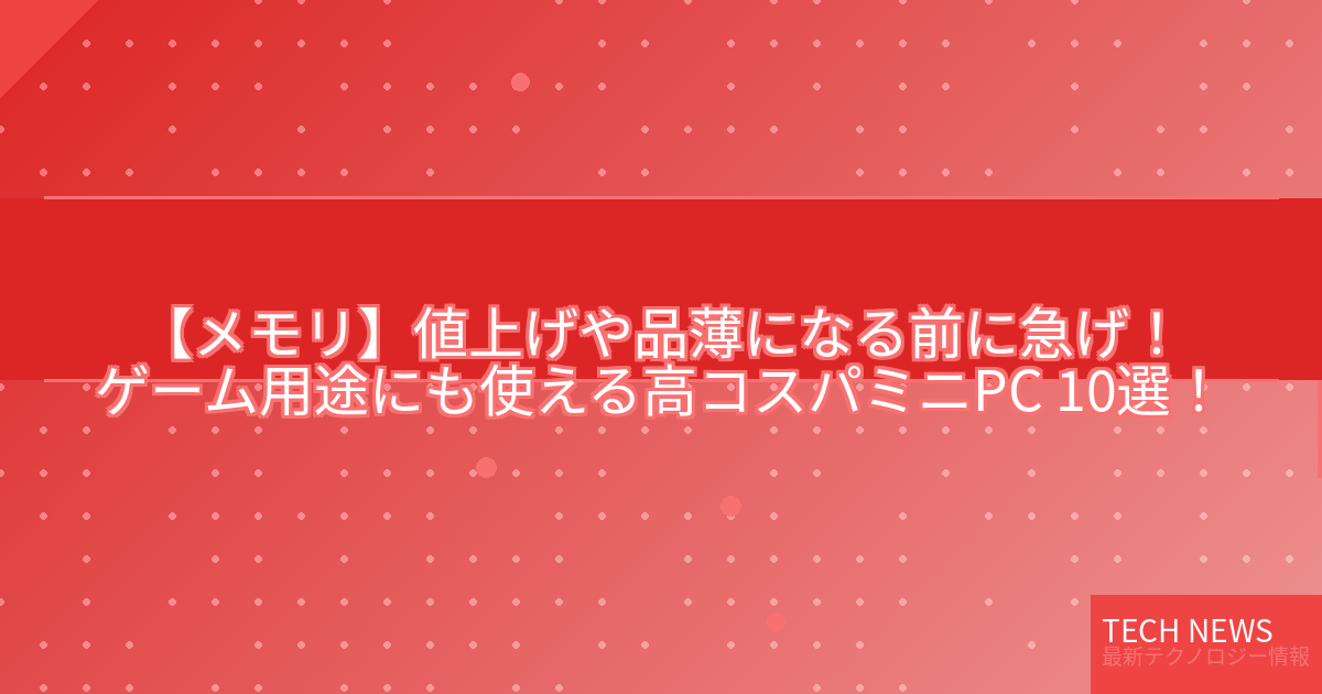記事タイトル:値上げや品薄になる前に急げ!ゲーム用途にも使える高コスパミニPC 10選!