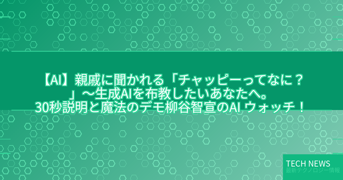 記事タイトル:親戚に聞かれる「チャッピーってなに?」~生成AIを布教したいあなたへ。30秒説明と魔法のデモ【柳谷智宣のAI ウォッチ!】