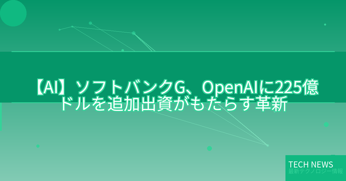 今回のニュースは、ソフトバンクグループがAI研究開発企業のOpenAIに対して行った大規模な追加出資について報じたものです。OpenAIは、人工知能の基礎研究と革新的なAIシステムの開発に取り組む企業として知られています。特に、言語モデルのGPTシリーズや画像生成モデルのDALLEなどの技術は、AIの可能性を大きく広げ、注目を集めています。