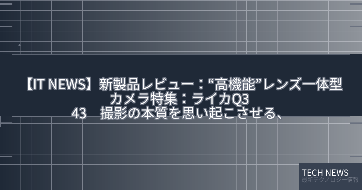 【IT NEWS】新製品レビュー:“高機能”レンズ一体型カメラ特集:ライカQ3 43 撮影の本質を思い起こさせる、シンプルかつ特別な存在