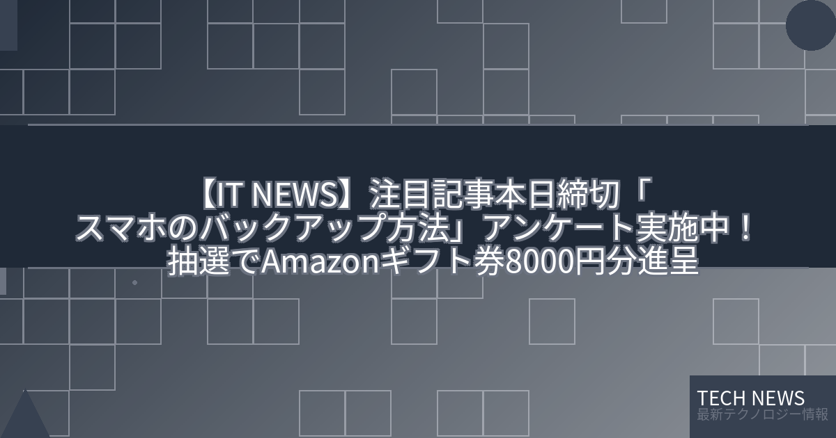 記事タイトル:【注目記事】【本日締切】「スマホのバックアップ方法」アンケート実施中! 抽選でAmazonギフト券8000円分進呈