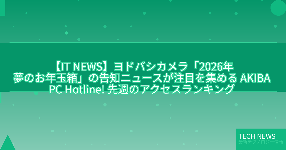 記事タイトル:ヨドバシカメラ「2026年 夢のお年玉箱」の告知ニュースが注目を集める AKIBA PC Hotline! 先週のアクセスランキング 25年12月22日~26年1月5日