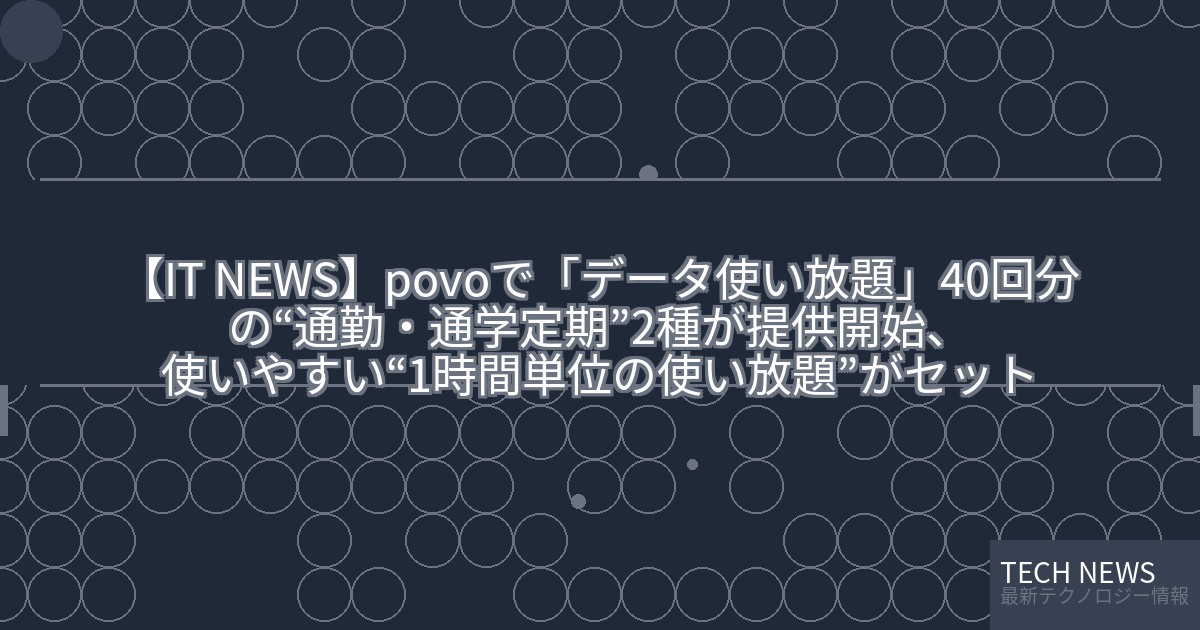 ・元記事タイトル:povoで「データ使い放題」40回分の“通勤・通学定期”2種が提供開始、使いやすい“1時間単位の使い放題”がセット