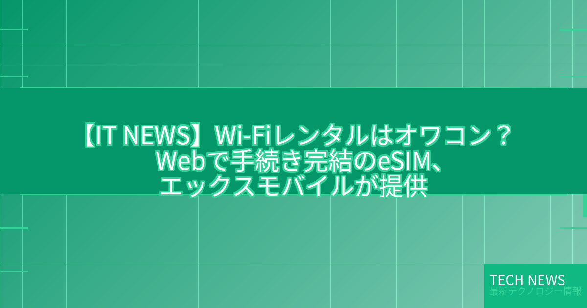 記事タイトル:Wi-Fiレンタルはオワコン? Webで手続き完結のeSIM、エックスモバイルが提供