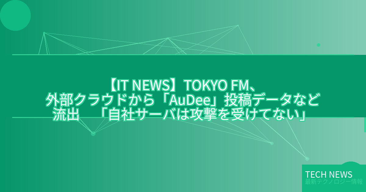 記事タイトル:TOKYO FM、外部クラウドから「AuDee」投稿データなど流出 「自社サーバは攻撃を受けてない」
