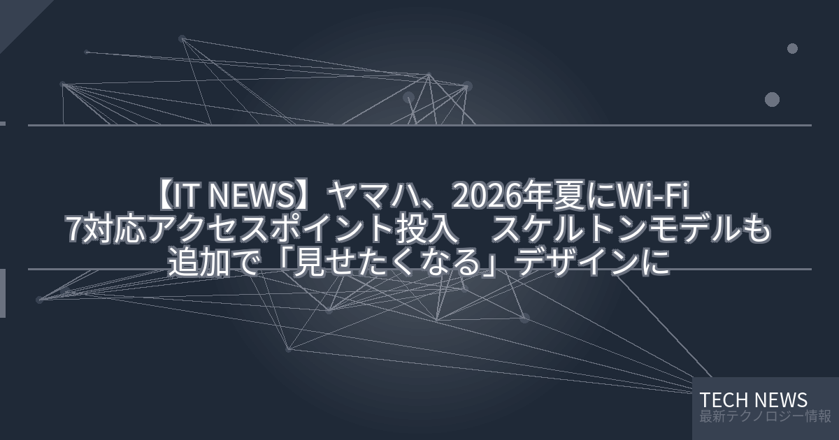 ・元記事タイトル:ヤマハ、2026年夏にWi-Fi 7対応アクセスポイント投入 スケルトンモデルも追加で「見せたくなる」デザインに