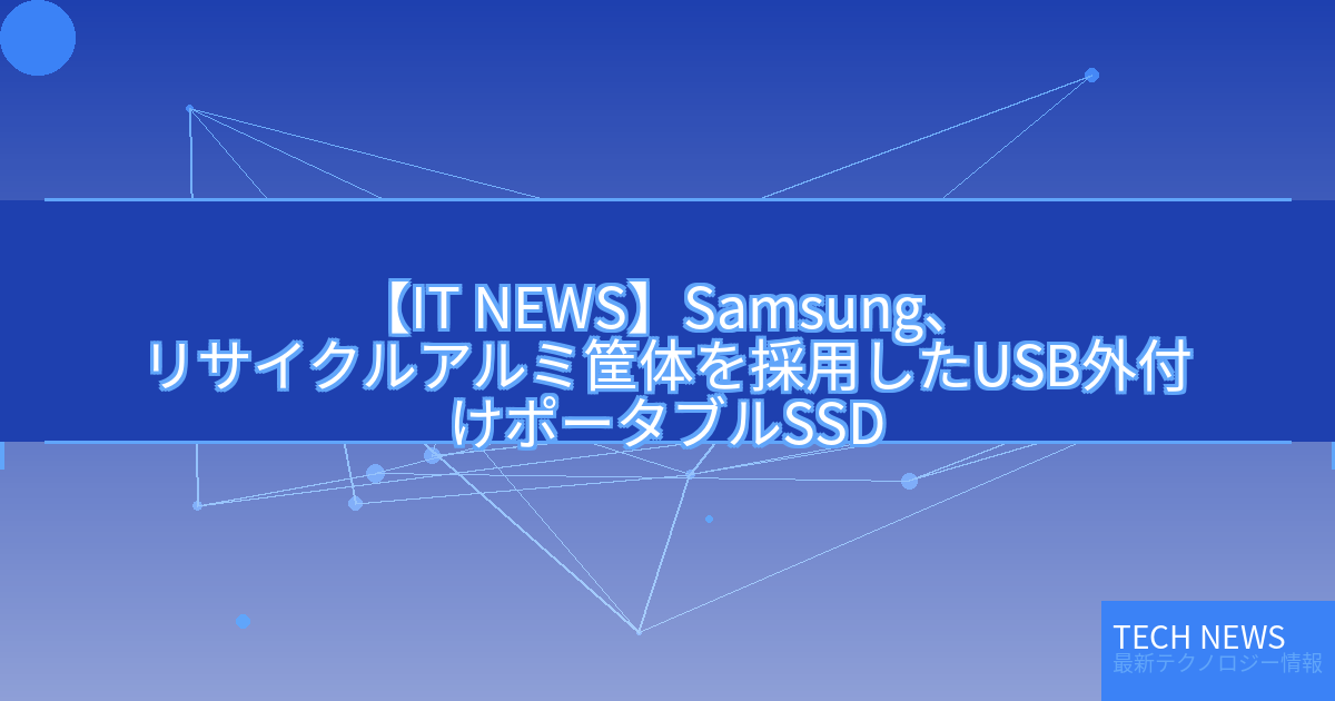 記事タイトル:Samsung、リサイクルアルミ筐体を採用したUSB外付けポータブルSSD