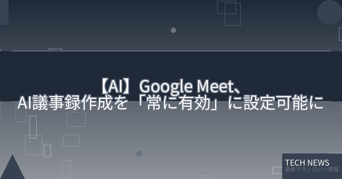 記事タイトル:Google Meet、AI議事録作成を「常に有効」に設定可能に