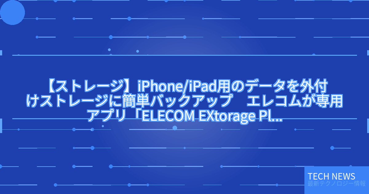 記事タイトル:iPhone/iPad用のデータを外付けストレージに簡単バックアップ エレコムが専用アプリ「ELECOM EXtorage Plus」を公開