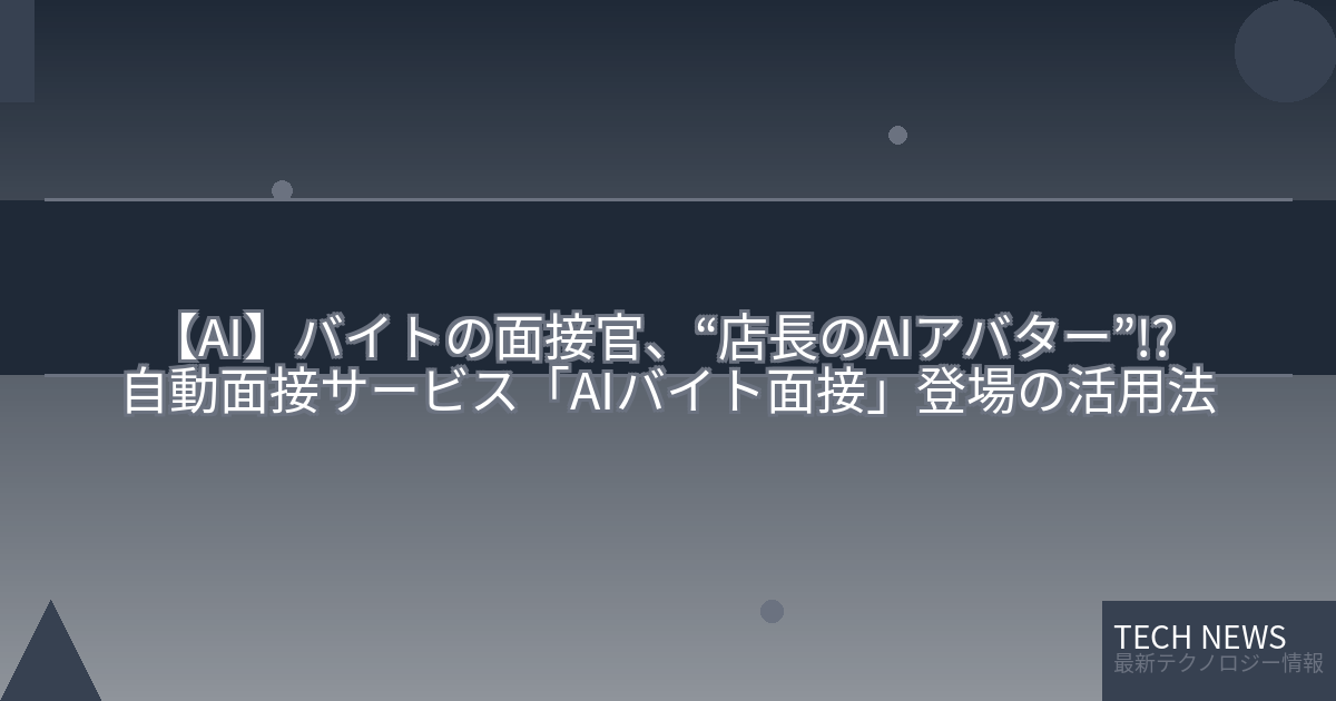 記事タイトル:バイトの面接官、“店長のAIアバター”!? 自動面接サービス「AIバイト面接」登場