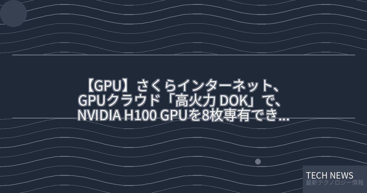 ・元記事タイトル:さくらインターネット、GPUクラウド「高火力 DOK」で、NVIDIA H100 GPUを8枚専有できるプランを提供開始