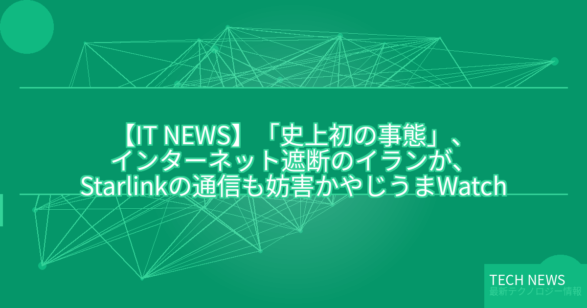 記事タイトル:「史上初の事態」、インターネット遮断のイランが、Starlinkの通信も妨害か【やじうまWatch】