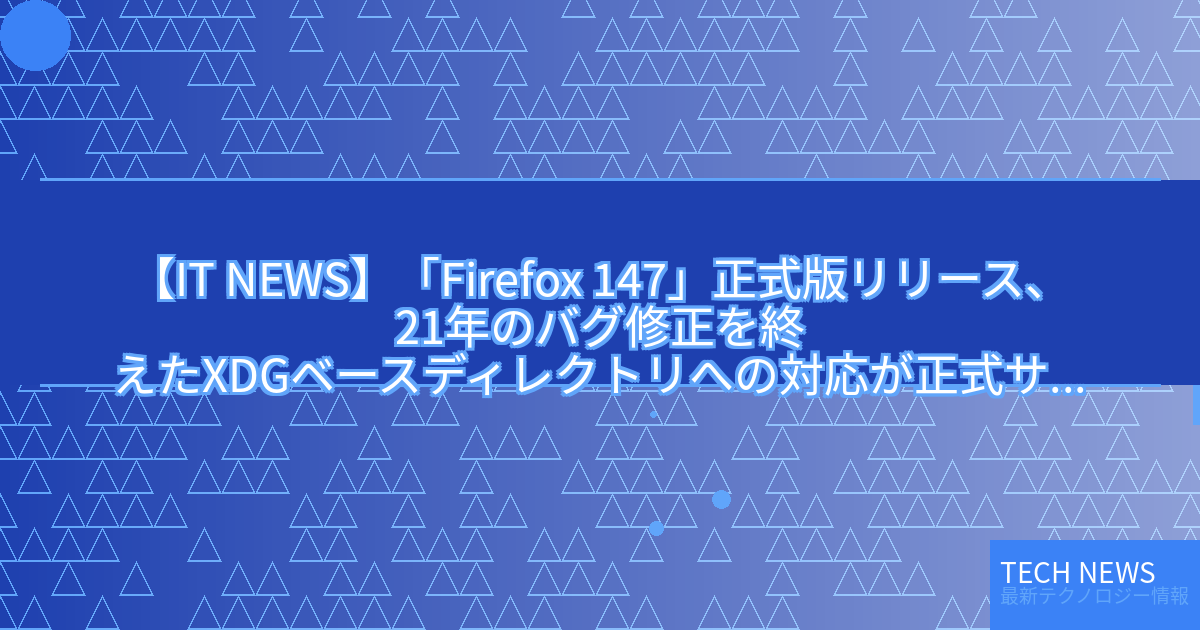 ・元記事タイトル:「Firefox 147」正式版リリース、21年のバグ修正を終えたXDGベースディレクトリへの対応が正式サポートに